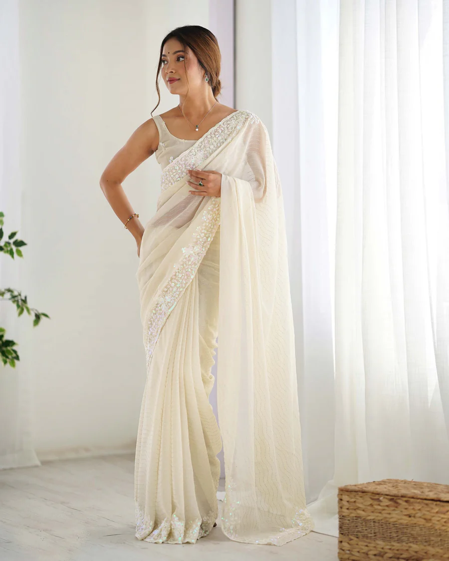 Lightweight and flowy georgette saree with a smooth drape—perfect for parties, office wear, and evening occasions.